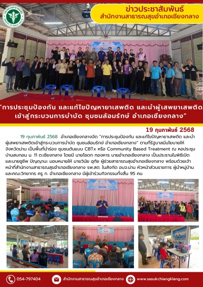 “การประชุมป้องกัน และแก้ไขปัญหายาเสพติด และนำผู้เสพยาเสพติดเข้าสู่กระบวนการบำบัด ชุมชนล้อมรักษ์ อำเภอเชียงกลาง” 19 กุมภาพันธ์ 2568