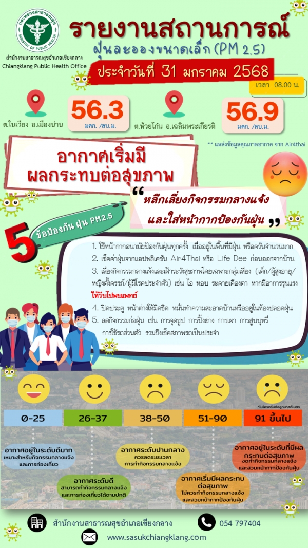 รายงานสถานการณ์ฝุ่นละอองขนาดเล็ก (PM 2.5) 31 ม.ค. 68